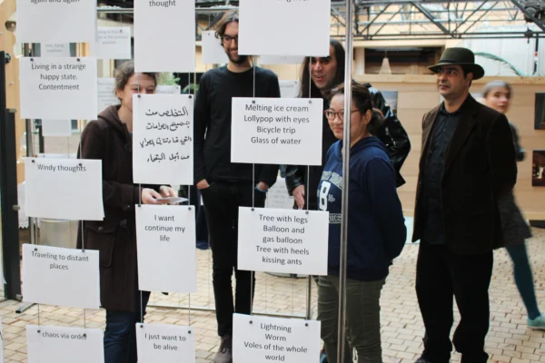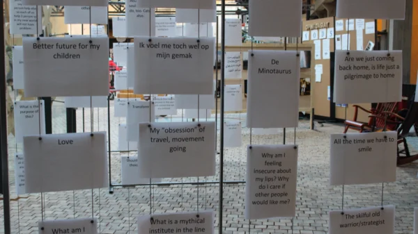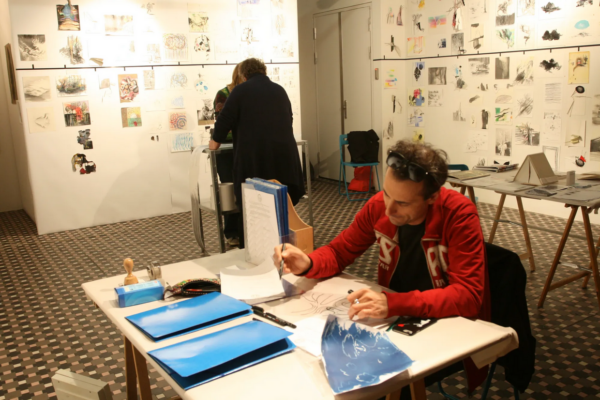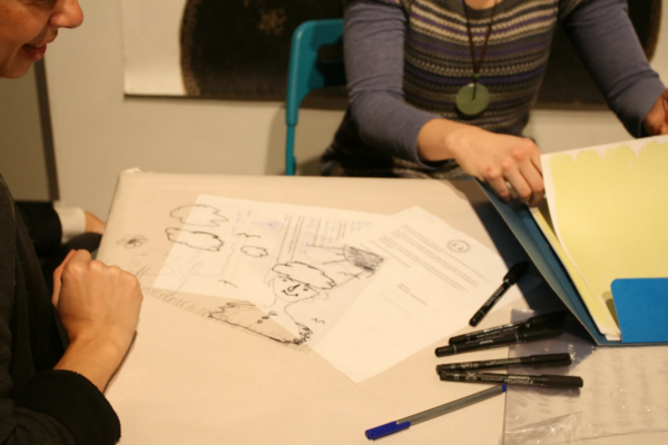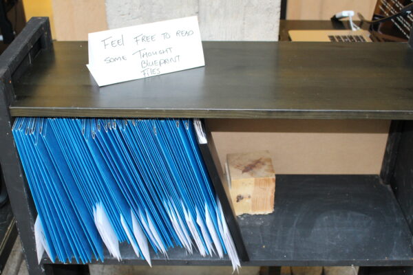“TheThought Blueprint Project”, launched in 2016 and is still going on. Participating in the project is possible trough one on one performances or via a workshop. It is a method that encourages people to participate in an alternative form of personal storytelling, based on making a visual translation of thoughts by filling in the “Thought Exploration Form”. By going through the form, the participants generate a written version of their thoughts which, step by step, translates into an image that gets transformed into a blueprint. After each performance, the produced Thought Blueprints are placed in a file map and stored in the Thought Blueprint Archive. The archive can be exhibited.